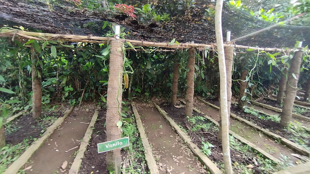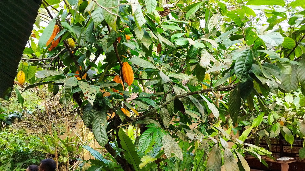 進入後就是一片綠意,種了很多植物、如香蕉、可可、咖啡等植物。
