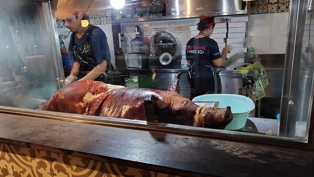 在櫃台上的烤乳豬,就是等下我們的晚餐,看起來味道不錯。